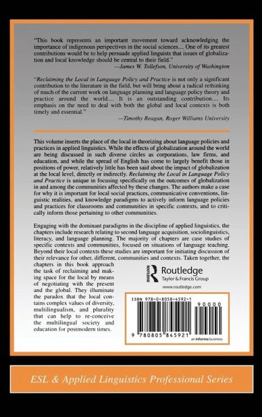 This volume inserts the place of the local in theorizing about language policies and practices in applied linguistics. It is unique in focusing specifically on the outcomes of globalization in and among the communities affected by these changes.
