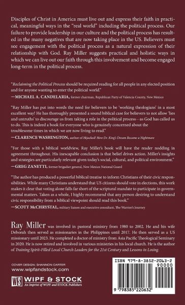 Disciples of Christ in America must live out and express their faith in practical, meaningful ways in the ""real world"" including the political process. Our failure to provide leadership in our culture and the political process has resulted in the many negatives that are now taking place in the US. Believers must see engagement with the political process as a natural expression of their relationship with God. Ray Miller suggests practical and holistic ways in which we can live out our faith through this involvement and become engaged long-term in the political process.