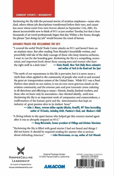When asked about the death toll from the September 11th attacks, New York City Mayor Rudy Giuliani stated simply and eloquently that the number would likely be "more than any of us can bear." He was right, of course. Yet often obscured in that inconceivable number is the fact that among those who died, as well as those who lived and continue to live, were many thousands of aviation professionals with names, families, lives, and individual experiences that are an important part of the 9/11 story. Some five years later, these stories are being told for the first time in Reclaiming the Sky. In the pages of this book, you will meet some of the people whose hard work propels a critical social and economic force -- the aviation industry -- and who on the morning of September 11th, were suddenly thrust into front-line positions in the battle to put our nation back on its feet. For many of these men and women and their families, the pain and after-effects of 9/11 are exceptionally acute, but their stories will serve as touchpoints for the thousands of people whose journey to closure is still ongoing. This powerful and ultimately uplifting book not only honors the heroes of September 11th, it also offers common ground to those in search of meaning and purpose in a changed world -- both in and outside of the air travel industry -- and gives Americans in all walks of life something they still seek five years after 9/11: the courage and strength to move forward.