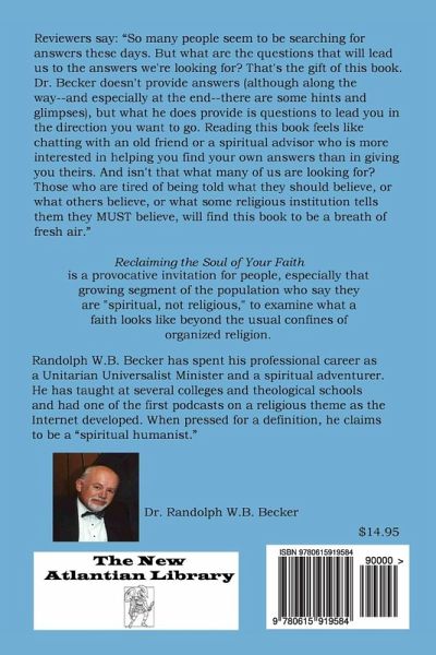 Reclaiming the Soul of Your Faith is a provocative invitation for people, especially that growing segment of the population who say they are "spiritual, not religious," to examine what a faith looks like beyond the usual confines of organized religion.