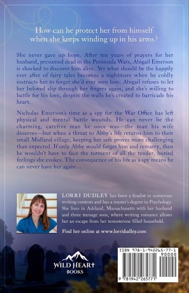 How can he protect her from himself when she keeps winding up in his arms? She never gave up hope. After ten years of prayers for her husband, presumed dead in the Peninsula Wars, Abigail Emerson is shocked to discover him alive. Yet what should be the happily ever after of fairy tales becomes a nightmare when he coldly instructs her to forget she'd ever seen him. Abigail refuses to let her beloved slip through her fingers again, and she's willing to battle for his love, despite the walls he's created to barricade his heart. Nicholas Emerson's time as a spy for the War Office has left physical and mental battle wounds. He can never be the charming, carefree man he once was-the man his wife deserves-but when a threat to Abby's life returns him to their small Midland village, keeping her safe proves more challenging than expected. If only Abby would forget him and remarry, then he wouldn't have to face the torment of all the tender, buried feelings she evokes. The consequence of his life as a spy means he can never have her again...
