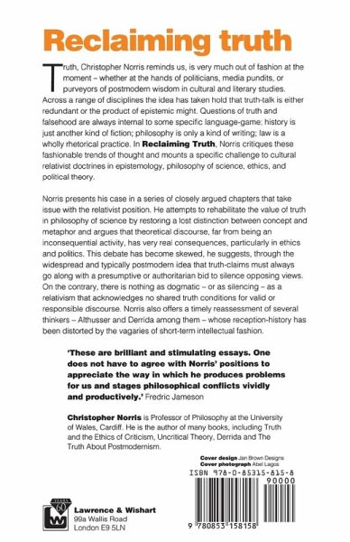 Truth, Christopher Norris reminds us, is very much out of fashion at the moment - whether at the hands of politicians, media pundits, or purveyors of postmodern wisdom in cultural and literary studies. Across a range of disciplines the idea has taken hold that truth-talk is either redundant or the product of epistemic might. Questions of truth and falsehood are always internal to some specific language-game; history is just another kind of fiction; philosophy is only a kind of writing; law is a wholly rhetorical practice. In Reclaiming Truth, Norris critiques these fashionable trends of thought and mounts a specific challenge to cultural relativist doctrines in epistemology, philosophy of science, ethics, and political theory. Norris attempts to rehabilitate the value of truth in philosophy of science by restoring a lost distinction between concept and metaphor and argues that theoretical discourse, far from being an inconsequential activity, has very real consequences, particularly in ethics and politics. 'These are brilliant and stimulating essays. One does not have to agree with Norris' position to appreciate the way in which he produces problems for us and stages philosophical conflicts vividly and productively.' Fredric Jameson