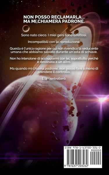 Non posso reclamarla... ma mi chiamerà padrone. Sono nato cieco. I miei geni sono difettosi. Incompatibili con la riproduzione. Questa è l'unica ragione per cui non rivendico la seducente umana che abbiamo salvato durante un'asta di schiave. Non ho intenzione di accoppiarmi con lei, soprattutto perché è destinata a un altro. Ma quando mi chiama padrone, non posso fare a meno di prendere il controllo. E la controllerò.