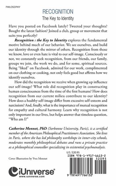 Have you posted on Facebook lately? Tweeted your thoughts? Bought the latest fashion? Joined a club, group or movement that suits you perfectly? Recognition : the Key to Identity explores the fundamental motive behind much of our behavior. We see ourselves, and build our identity through the mirror of others. Recognition from those we know, love or even hate is vital to our self-image. Consciously or not, we constantly seek recognition, from our friends, our family, groups we join, the work we do, and for some, spiritual sources. Being "liked" on Facebook, admired for our work, complimented on our clothing or cooking, not only feels good but affirms how we identify ourselves. How did the recognition we receive when growing up influence our self-image? What role did recognition play in constructing human consciousness from the time of the first humans? How does recognition from our current milieu contribute to our identity? How does a healthy self-image differ from excessive self-esteem and narcissism? And, finally, what is the importance of mutual recognition for empathy and cultural harmony. Learn why recognition is not only important in our lives, but helps answer that timeless question, "Who am I?"