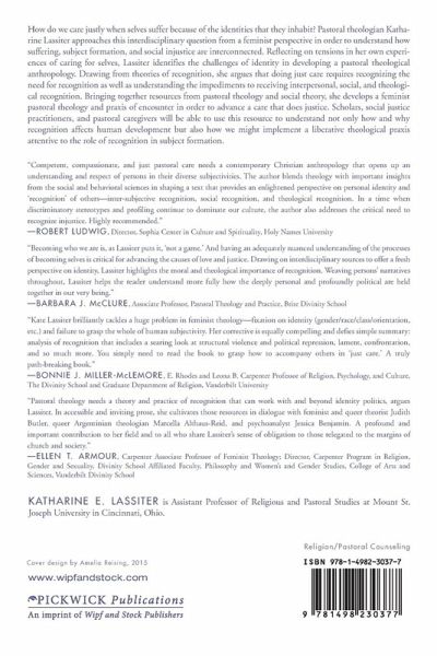 How do we care justly when selves suffer because of the identities that they inhabit? Pastoral theologian Katharine Lassiter approaches this interdisciplinary question from a feminist perspective in order to understand how suffering, subject formation, and social injustice are interconnected. Reflecting on tensions in her own experiences of caring for selves, Lassiter identifies the challenges of identity in developing a pastoral theological anthropology. Drawing from theories of recognition, she argues that doing just care requires recognizing the need for recognition as well as understanding the impediments to receiving interpersonal, social, and theological recognition. Bringing together resources from pastoral theology and social theory, she develops a feminist pastoral theology and praxis of encounter in order to advance a care that does justice. Scholars, social justice practitioners, and pastoral caregivers will be able to use this resource to understand not only how and why recognition affects human development but also how we might implement a liberative theological praxis attentive to the role of recognition in subject formation.