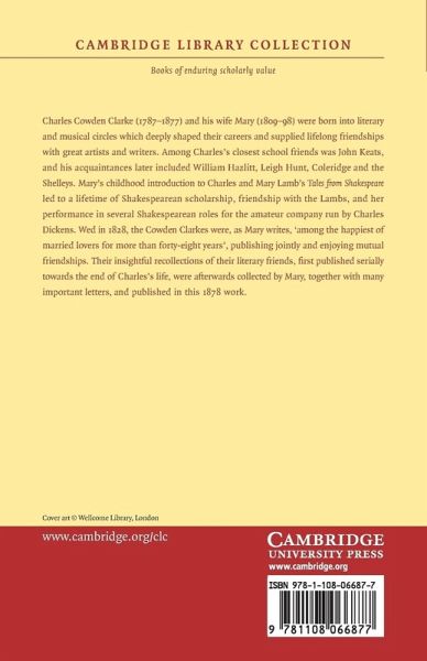 Charles Cowden Clarke (1787-1877) and his wife Mary (1809-98) were born into literary and musical circles which deeply shaped their careers and supplied lifelong friendships with great artists and writers. Among Charles's closest school friends was John Keats, and his acquaintances later included William Hazlitt, Leigh Hunt, Coleridge and the Shelleys. Mary's childhood introduction to Charles and Mary Lamb's Tales from Shakespeare led to a lifetime of Shakespearean scholarship, friendship with the Lambs, and her performance in several Shakespearean roles for the amateur company run by Charles Dickens. Wed in 1828, the Cowden Clarkes were, as Mary writes, 'among the happiest of married lovers for more than forty-eight years', publishing jointly and enjoying mutual friendships. Their insightful recollections of their literary friends, first published serially towards the end of Charles's life, were afterwards collected by Mary, together with many important letters, and published in this 1878 work.