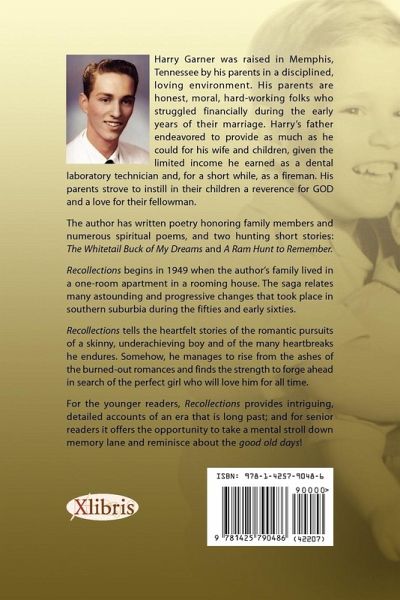 Recollections begins in 1949 when the author's family lived in a one-room apartment in a rooming house. The saga relates many astounding and progressive changes that took place in southern suburbia during the fifties and early sixties. Recollections tells the heartfelt stories of the romantic pursuits of a skinny, underachieving boy and of the many heartbreaks he endures. Somehow, he manages to rise from the ashes of the burned-out romances and finds the strength to forge ahead in search of the perfect girl who will love him for all time. For the younger readers, Recollections provides intriguing, detailed accounts of an era that is long past; and for senior readers it offers the opportunity to take a mental stroll down memory lane and reminisce about the good old days!