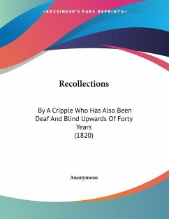 Recollections: By A Cripple Who Has Also Been Deaf And Blind Upwards Of Forty Years is an autobiographical account of an anonymous author who has been afflicted with multiple disabilities for over four decades. The author shares their experiences of living as a cripple, deaf and blind person, and the challenges they faced in their daily life. The book is a poignant reflection on the author's struggles and the resilience they exhibited in overcoming obstacles. It also sheds light on the social attitudes towards disability during the early 19th century. Recollections is a valuable historical document that provides insight into the lives of disabled people in the past and their struggles for acceptance and inclusion in society.This scarce antiquarian book is a facsimile reprint of the old original and may contain some imperfections such as library marks and notations. Because we believe this work is culturally important, we have made it available as part of our commitment for protecting, preserving, and promoting the world's literature in affordable, high quality, modern editions, that are true to their original work.