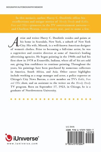 In this memoir, author Harry C. Doolittle offers his recollections and unique stories of Howdy Doody and Kukla, Fran and Ollie-pioneers in the TV entertainment universe-and Charlton Heston, iconic movie star, just to name a few.
