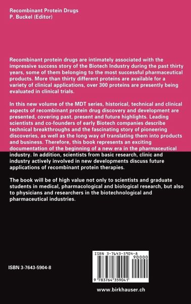 Recombinant protein drugs are intimately associated with the impressive success story of the Biotech Industry during the past thirty years, some of them belonging to the most successful pharmaceutical products. More than thirty different proteins are available for a variety of clinical applications, over 300 proteins are presently being evaluated in clinical trials. In this new volume of the MDT series, historical, technical and clinical aspects of recombinant protein drug discovery and development are presented, covering past, present and future highlights. Leading scientists and co-founders of early Biotech companies describe technical breakthroughs and the fascinating story of pioneering discoveries, as well as the long way of translating them into products and business. Therefore, this book represents an exciting documentation of the beginning of a new era in the pharmaceutical industry. In addition, scientists from basic research, clinic and industry actively involved in newdevelopments discuss...