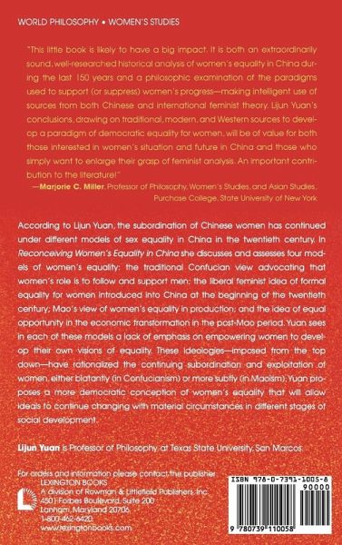 This little book is likely to have a big impact. It is both an extraordinarily sound, well-researched historical analysis of women's equality in China during the last 150 years and a philosophic examination of the paradigms used to support (or suppress) women's progress-making intelligent use of sources from both Chinese and international feminist theory. Lijun Yuan's conclusions, drawing on traditional, modern, and western sources to develop a paradigm of democratic equality for women, will be of value for both those interested in women's situation and future in China and those who simply want to enlarge their grasp of feminist analysis. An important contribution to the literature! -- Marjorie C. Miller, professor of philosophy, women's studies, and Asian studies, Purchase College-SUNY