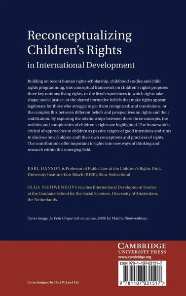 Introduction; 1. Living rights, social justice, translations Karl Hanson and Olga Nieuwenhuys; Part I. Living Rights: 2. Ukugana: 'informal marriage' and children's rights discourse among rural 'AIDS-orphans' in KwaZulu-Natal, South Africa Patricia C. Henderson; 3. Seeing and knowing? Street children's lifeworlds through the camera's lens Phil Mizen and Yaw Ofosu-Kusi; 4. Interdependent rights and agency: the role of children in collective livelihood strategies in rural Ethiopia Tatek Abebe; 5. Young carpet weavers on the rights threshold: protection or practical self-determination? Tom O'Neill; Part II. Social Justice: 6. Conflicting realities: the Kikuyu ethos and the CRC ethic Yvan Droz; 7. The politics of failure: street children and the circulation of rights discourses in Kolkata (Calcutta), India Sarada Balagopalan; 8. Malik and his three mothers: AIDS orphans' survival strategies and how children's rights hinder them Kristen E. Cheney; Part III. Translations: 9. Living history by youth in post-war situations Colette Daiute; 10. Inclusive universality and the child-caretaker dynamic Eva Brems; 11. Do children have a right to work? Working children's movements in the struggle for social justice Manfred Liebel; 12. Translating working children's rights into international labour law Karl Hanson and Arne Vandaele; Part IV. Conclusion: 13. Children's rights and social movements: reflections from a cognate field Neil Stammers.
