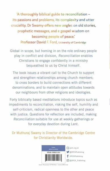 A throughly biblical guide to reconcilation-its passions and problems, its complexity and utter cruciality. Dr. Swamy offers new angles on old stories, prophetic messages, and a gospel wisdom on becaming people of peace.' The book issues a vibrant call to the Church to support and strenghthen relationships among church members; to cross borders to build connections with different denominations; and to maintain open attitudes towards our neighbour from other religions and ideologies.