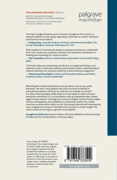 'This book makes an outstanding contribution to analytical thinking on an important topic in interstate relations and provides a better understanding of relations between two societies marked by a deep historical antagonism.' Mohammad-Reza Djalili, Professor of International History and Politics, Graduate Institute, Geneva 'Both students of international relations and peace practitioner will benefit from Heo's study and combined, will lead to an important contribution in building and expanding the culture of peace.' Mari Yamashita, Director, United Nations Information Centre (UNIC) Tokyo, Japan 'Striving to bridge disciplines and continents, Dr. Heo's book is a welcomed addition to the rapidly expanding scholarship on conflict resolution and historical reconciliation.' Daqing Yang, Associate Professor of History and International Affairs, The George Washington University, Washington, USA