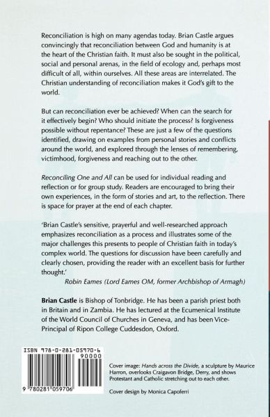 Reconciliation is high on many agendas today. Brian Castle argues convincingly that reconciliation between God and humanity is at the heart of the Christian faith. It must also be sought in the political, social and personal arenas, in the field of ecology and, perhaps most difficult of all, within ourselves. All these areas are interrelated. The Christian understanding of reconciliation makes it God's gift to the world. But can reconciliation ever be achieved? When can the search for it effectively begin? Who should initiate the process? Is forgiveness possible without repentance? These are just a few of the questions identified, drawing on examples from personal stories and conflicts around the world, and that are explored through the lenses of remembering, victimhood, forgiveness and reaching out to the other. Reconciling One and All can be used for individual reading and reflection or for group study. Readers are encouraged to bring their own experiences, in the form of stories and art, to the reflection. There is space for prayer at the end of each chapter. 'Brian Castle's sensitive, prayerful and well-researched approach emphasizes reconciliation as a process and illustrates some of the major challenges this presents to people of Christian faith in today's complex world. The questions for discussion have been carefully and clearly chosen, providing the reader with an excellent basis for further thought.' Robin Eames (Lord Eames OM, former Archbishop of Armagh)