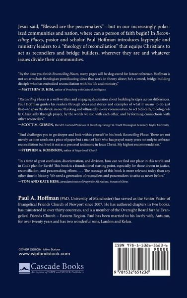 Jesus said, "Blessed are the peacemakers"--but in our increasingly polarized communities and nation, where can a person of faith begin? In Reconciling Places, pastor and scholar Paul Hoffman introduces laypeople and ministry leaders to a "theology of reconciliation" that equips Christians to act as reconcilers and bridge builders, wherever they are and whatever issues divide their communities.