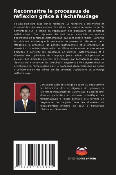 Il s'agit d'un livre basé sur la recherche. La recherche a été menée en observant les réponses uniques des élèves de quatrième année de l'école élémentaire sur le thème de l'application des opérations de comptage mathématique. Ces réponses décrivent leurs capacités en matière d'opérations de comptage mathématique, qui sont encore faibles. L'analyse des données montre que le processus de pensée est classé en deux catégories, le processus de pensée instrumentale et le processus de pensée instrumentale relationnelle. Les élèves ont éprouvé de nombreuses difficultés à convertir les problèmes en phrases mathématiques et à effectuer des opérations de comptage (soustraction, multiplication et division). Les difficultés peuvent être résolues par l'échafaudage. Avec les résultats de la recherche, les chercheurs suggèrent à l'enseignant d'utiliser la technique de l'échafaudage dans le processus d'apprentissage en notant la compréhension des élèves sur les concepts d'opérations de comptage mathématique.