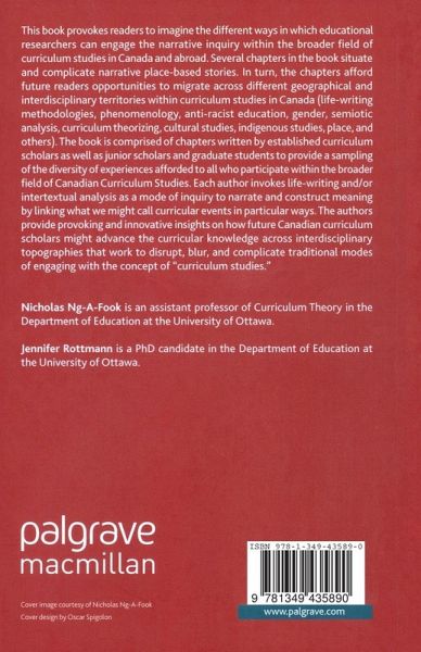 Introduction - Nicholas N-A-Fook and Jennifer Rottmann SECTION I: CURRICULUM, PLACE, AND INDIGENOUSNESS 1. 'We are all treaty people': The Contemporary Countenance of Canadian Curriculum Studies; Cynthia Chambers 2. Forts, Curriculum, and Ethical Relationality; Dwayne Donald 3. Aoksisowaato'op: Place and Story as Organic Curriculum; Narcisse Blood, Cynthia Chambers, Dwayne Donald, Erika Hasebe-Ludt, and Ramona Big Head 4. Reconsidering Canadian Environmental Curriculum Studies: Framing an Approach to Ecojustice; Andrejs Kulnieks, Nicholas Ng-A-Fook, Darren Stanley, and Kelly Young SECTION II: CURRICULUM, CULTURE, AND LANGUAGE 5. Educational Rights: Language Rights and Rights to a Plural Education; Denise Egéa-Kuehne 6. Theorizing Asian Canada, Reframing Differences; Roland Sintos Coloma 7. Provoking Curriculum Studies in Multicultural Societies; Denise Egéa-Kuehne 8. A Curriculum of the Streets Through the Camera Lens: Marginalized Canadian Women and Smoking; Sharon Anne Cook SECTION III: CURRICULUM, INTER-TEXTS, AND WISDOM TRADITIONS 9. Revisiting Aoki's 'Inspiriting the Curriculum'; William. E. Doll, Jr. 10. Wabi Sabi and the Pedagogical Countenance of Names; Jackie Seidel and David W. Jardine 11. Auto/ethno/graphy as Continental Driftwork: A Fragile Weathering of Icebergs Drifting and Stories Shifting . . .; Pat Palulis 12. Poaching in the Chords of Reading: Dwelling in the Murky Spaces of the Literary Landwash; David Lewkowich 13. Uncommon Composure: Becoming a Teacher; Maxx Lapthorne and Deanne Lomheim Barrett Afterword; William F. Pinar