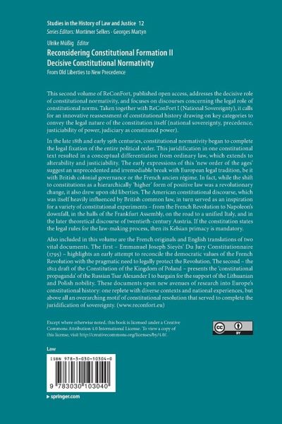 This second volume of ReConFort, published open access, addresses the decisive role of constitutional normativity, and focuses on discourses concerning the legal role of constitutional norms. Taken together with ReConFort I (National Sovereignty), it calls for an innovative reassessment of constitutional history drawing on key categories to convey the legal nature of the constitution itself (national sovereignty, precedence, justiciability of power, judiciary as constituted power).