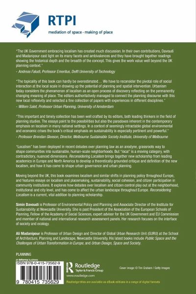 ""Localism" has been deployed in recent debates over planning law as an anodyne, grassroots way to shape communities into sustainable, human-scale neighborhoods. But "local" is a moving category, with contradictory, nuanced dimensions. Reconsidering Localism brings together new scholarship from leading academics in Europe and North America to develop a theoretically-grounded critique and definition of the new localism, and how it has come to shape urban governance and urban planning.Moving beyond the UK,this book examines localism and similar shifts in planning policy throughout Europe, and features essays on localism and place-making, sustainability, social cohesion, and citizen participation in community institutions. It explores how debates over localism and citizen control play out at the neighborhood, institutional and city level, and has come to effect the urban landscape throughout Europe. Reconsidering Localism is a current, vital addition to planning scholarship"--