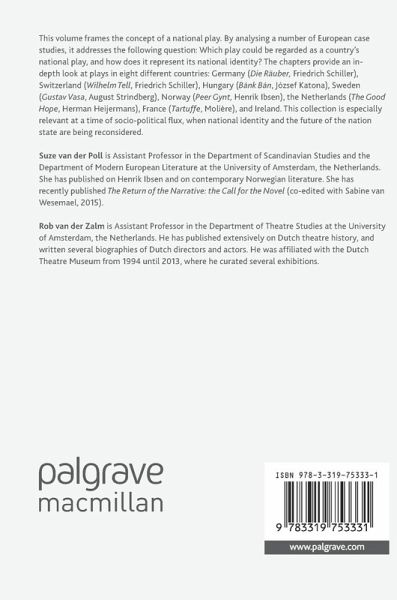 This volume frames the concept of a national play. By analysing a number of European case studies, it addresses the following question: Which play could be regarded as a country's national play, and how does it represent its national identity? The chapters provide an in-depth look at plays in eight different countries: Germany (Die Räuber, Friedrich Schiller), Switzerland (Wilhelm Tell, Friedrich Schiller), Hungary (Bánk Bán, József Katona), Sweden (Gustav Vasa, August Strindberg), Norway (Peer Gynt, Henrik Ibsen), the Netherlands (The Good Hope, Herman Heijermans), France (Tartuffe, Molière), and Ireland. This collection is especially relevant at a time of socio-political flux, when national identity and the future of the nation state is being reconsidered.