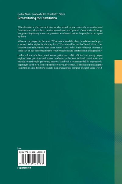 All nation states, whether ancient or newly created, must examine their constitutional fundamentals to keep their constitutions relevant and dynamic. Constitutional change has greater legitimacy when the questions are debated before the people and accepted by them. Who are the peoples in this state? What role should they have in relation to the government? What rights should they have? Who should be Head of State? What is our constitutional relationship with other nation states? What is the influence of international law on our domestic system? What process should constitutional change follow? In this volume, scholars, practitioners, politicians, public officials, and young people explore these questions and others in relation to the New Zealand constitution and provide some thought-provoking answers. This book is recommended for anyone seeking insight into how a former British colony with bicultural foundations is making the transition to a multicultural society in an increasingly complex and globalised world.