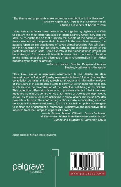 'This book makes a significant contribution to the debate on state reconstruction in Africa. Written by seasoned scholars of African Studies, this compilation contains a highly refreshing, rigorous and informative analysis of the failure of the postcolonial state to carry out its fundamental functions, which include the maximization of the collective well-being of its citizens. This collection differs significantly from previous efforts in that it not only identifies the reasons behind Africa's high levels of poverty and deprivation, as well as its continued marginalization in global affairs, but it also provides possible solutions. The contributing authors make a compelling case for democratic institutional reforms to found a state built on public sovereignty to replace the anachronistic, repressive, exploitative and insensitive state inherited from the European imperialist powers.'