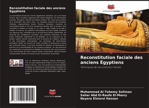 La reconstitution faciale des momies égyptiennes anciennes, qui a une longue histoire, aide à visualiser l'apparence des anciens Égyptiens. Les technologies avancées d'imagerie médicale permettent d'obtenir des cartes plus précises de la profondeur des tissus mous, sur lesquelles reposent les principales méthodes d'approximation faciale. Plusieurs techniques manuelles de reconstitution faciale en 3D sont actuellement utilisées dans la pratique. Elles consistent à modeler un visage sur le crâne à l'aide d'argile et de pâte à modeler. À l'inverse, les systèmes informatiques sont plus rapides et offrent une approche plus scientifique que la reconstruction faciale traditionnelle, qui nécessite des compétences manuelles. Ces systèmes présentent un haut niveau d'efficacité, d'objectivité et de flexibilité, car ils s'appuient sur les progrès rapides réalisés récemment dans le domaine de l'imagerie médicale et des technologies informatiques. Les techniques 3D informatisées permettent l'étude non invasive de restes momifiés et élargissent le champ des recherches futures. Il est donc essentiel de réévaluer en permanence la précision et la reproductibilité de ces nouveaux systèmes, car cela favorisera leur amélioration et augmentera la fiabilité et la précision des reconstructions. Il est recommandé de mener d'autres études comparatives utilisant d'autres reconstructions faciales de momies et des combinaisons de portraits.