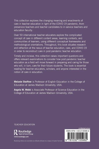 Timely and incisive, this collection raises important questions and offers relevant examinations to consider how post-pandemic teacher education as a field will move forward in preparing and caring for those who will, in turn, care for their future students. The book is essential reading for teacher educators, scholars, and anyone interested in the notion of care in education.