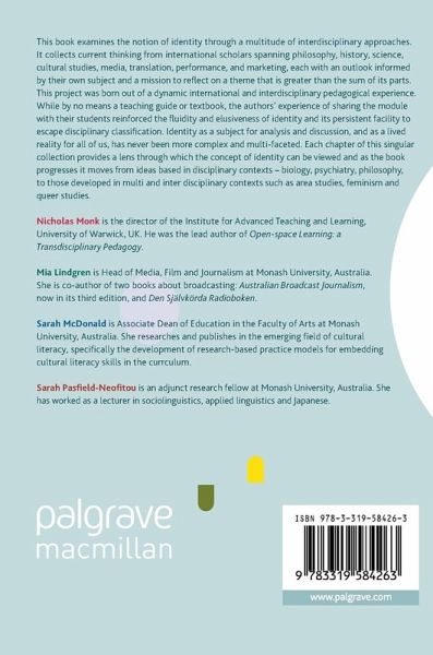 This book examines the notion of identity through a multitude of interdisciplinary approaches. It collects current thinking from international scholars spanning philosophy, history, science, cultural studies, media, translation, performance, and marketing, each with an outlook informed by their own subject and a mission to reflect on a theme that is greater than the sum of its parts. This project was born out of a dynamic international and interdisciplinary pedagogical experience. While by no means a teaching guide or textbook, the authors' experience of sharing the module with their students…mehr