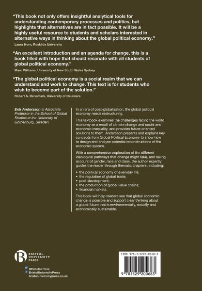This intersectional and future-orientated textbook examines the challenges facing the world economy as a result of climate change and rising inequality. It presents and explains key concepts and theories from Global Political Economy, showing how these can be used to design a reconstruction of the global political economy.