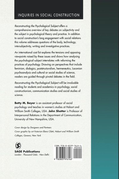 This major book offers a comprehensive overview of key debates on subjectivity and the subject in psychological theory and practice. In addition to social construction's long engagement with social relations, this volume addresses questions of the body, technology, intersubjectivity, writing and investigative practices.