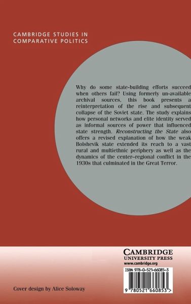 Why do some state-building efforts succeed when others fail? Using formerly unavailable archival sources, this book presents an explanation for the rise and subsequent collapse of the Soviet state. The study explains how personal networks and elite identity served as informal sources of power that influenced state strength. Reconstructing the State also offers alternative interpretations of how the weak Bolshevik state extended its reach to a vast rural and multi-ethnic periphery as well as the dynamics of the center-regional conflict in the 1930s that culminated in the Great Terror.