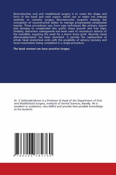 Reconstructive oral and maxillofacial surgery is to revive the shape and form of the head and neck region, which can or might not embody aesthetic or cosmetic surgery. Reconstructive surgeons employs the conception of reconstructive ladder to manage progressively complicated injuries. These procedures vary from easy techniques like primary closure and dressing to complicated skin grafts, tissue growth and free flaps. Similarly, distraction osteogenesis has been used to reconstruct defects of the mandible, negating the need for a donor bone graft. Recently, facial allotransplantation has been described. It permits the replacement of whole facial anatomical units with the possibility of sensory recovery and facial reanimation being completed in a single procedure.The book content can have sensitive images.