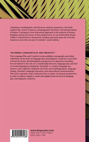 Humor may surface in numerous and diverse contexts, which at the same time determine how humor works, its form, and its functions and consequences for interlocutors. Adopting a sociolinguistic and discourse analytic perspective, this study is aligned with approaches to humor exploring the variety of humorous genres, the wide range of sociopragmatic functions of humor, and the more or less dissimilar perceptions speakers may have concerning what humor is, what it means, and how it works. The chapters of this book propose a new theoretical approach to the analysis of humor by bringing context into focus. Furthermore, the study explores how we can teach about humor within a critical literacy framework creating classroom space for everyday humorous texts that are part of students' social realities, and simultaneously taking into account that humor may yield multiple, disparaging, and often conflicting interpretations. This book is intended to appeal to humor researchers from various disciplines (such as linguistics, media studies, cultural studies, literary studies, sociology, anthropology, folklore) as well as to professionals or researchers in education.