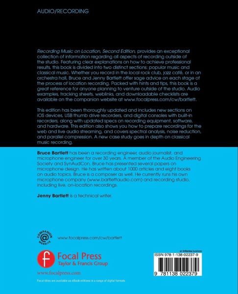 Recording Music on Location provides an exceptional collection of information regarding all aspects of recording outside of the studio. Featuring clear explanations on how to achieve professional results, this book is divided into two distinct sections: popular music and classical music. Whether you record in the local rock club, jazz café, or in an orchestra hall, Bartlett offers sage advice on each stage of the process of location recording. Packed with hints and tips, this book is a great reference for anyone planning to venture outside of the studio. Audio examples, tracking sheets, weblinks, and downloadable checklists are available on the companion website at www.focalpress.com/cw/bartlett.