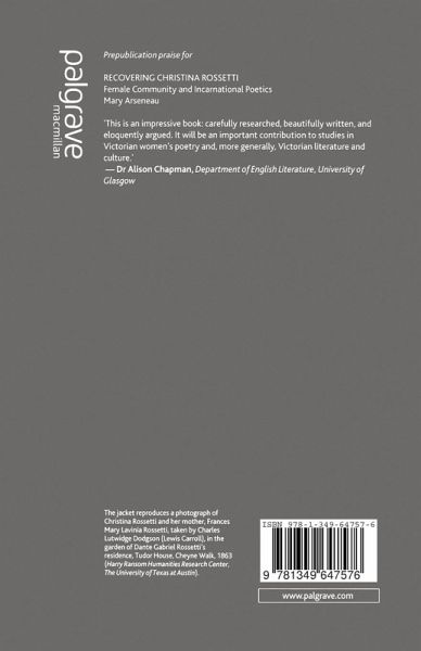 This book re-conceives Christina Rossetti's poetic identity by exposing the androcentric bias inherent in the histories of the Rossetti family and of Pre-Raphaelitism, by turning new attention to the Rossetti women, and by reconstituting a female and religious community for Rossetti's writing. Drawing on extensive archival research, Mary Arseneau investigates how Rossetti's religious faith sustains her poetic practice and authorizes her cultural and aesthetic critique; the result is a re-evaluation and re-contextualization of the whole range of Rossetti's writing.