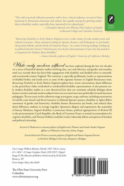 While early modern selfhood has been explored during the last two decades via a series of historical identity studies involving class, race and ethnicity, and gender and sexuality, until very recently there has been little engagement with disability and disabled selves in sixteenth- and seventeenth-century England. This omission is especially problematic insofar as representations of disabled bodies and minds serve as some of the signature features in English Renaissance texts. Recovering Disability in Early Modern England explores how recent conversations about difference in the period have either overlooked or misidentified disability representations. It also presents early modern disability studies as a new theoretical lens that can reanimate scholarly dialogue about human variation and early modern subjectivities even as it motivates more politically invested classroom pedagogies. The ten essays in this collection range across genre, scope, and time, including examinations of real-life court dwarfs and dwarf narrators in Edmund Spenser's poetry; disability in Aphra Behn's assessment of gender and femininity; disability humor, Renaissance jest books, and cultural ideas about difference; madness in revenge tragedies; Spenserian allegory and impairment; the materiality of literary blindness; feigned disability in Jonsonian drama; political appropriation of Richard III in the postcommunist Czech Republic; the Book of Common Prayeras textual accommodation for cognitive disability; and Thomas Hobbes's and John Locke's inherently ableist conceptions of freedom and political citizenship.