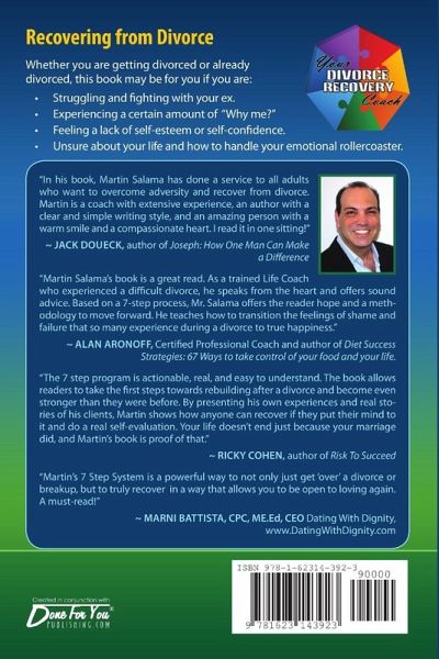 If you are getting divorced or already divorced, this book may be for you if you are: ¿ Struggling and fighting with you Ex. ¿ Experiencing a certain amount of "Why me?" ¿ Feeling a lack of self-esteem or self-confidence. ¿ Unsure about your life and how to handle your emotional roller coaster. If you are unsure how you are recovering from your divorce, "Recovering from Divorce" can help you get a handle on it.