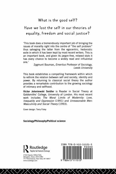 This important book seeks to place questions of morality and justice at the heart of social theory. By exploring the works of Marx, Durkheim and Weber it shows the hidden complexities of a modernity too often identified with a unified vision of the rational self later to fall apart into fragments within postmodernity. Reinstating the body and emotional life, Seidler sets new terms for respect and equality showing ways the self is undermined in its sense of self-worth and adequacy through the workings of relationships of power and subordination. Drawing upon feminism and Critical Theory to question the allegedly straightforward opposition between "essentialism" and "social constructionism" Seidler places the issues of morality right into the centre of "the self problem". Through reinstating connections between the self and the historical adventures of socialism, feminism, masculinity, ethnicity, and - autobiographically - Jewish identity, he shows the intimate affinity between these different categories of experience. Identities are not "freely chosen" but involve a coming to terms with histories of class, race and gender. Critical of postmodern theories in which anyhting goes and in which everything you see is relative, this book is concerned with the reassertion of value and recovering a viable tradition in which we can again explore issues of freedom and social justice. Our discussions have turned increasingly esoteric as they have sheltered in an intellectual cage which has been difficult to enter. This book seeks to open-up the cage and re-establish the suspended conversation between social theory and the concerns of everyday life.