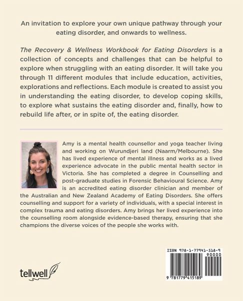 An invitation to explore your own unique pathway through your eating disorder, and onwards to wellness.The Recovery & Wellness Workbook for Eating Disorders is a collection of concepts and challenges that can be helpful to explore when struggling with an eating disorder. It will take you through 11 different modules that include education, activities, explorations and reflections. Each module is created to assist you in understanding the eating disorder, to develop coping skills, explore what sustains the eating disorder and finally, how to rebuild life after, or in spite of the eating disorder.