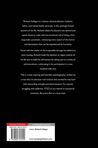 Richard Gallegos is a veteran ultramarathoner, husband, father, and mental health advocate. In this searingly honest account of his life, Richard relates his descent into alcohol and opiate abuse to cope with the emotional toll of being a first responder paramedic, witnessing every aspect of the horror and devastation that can be experienced by humanity. Faced with the reality of the irreparable damage his addictions were causing, Richard made the decision to regain control of his life and re-build his self-esteem by taking part in a series of ultramarathons, culminating in his participation in a one hundred mile race This is a truly inspiring and heartfelt autobiography, written by a man who hit absolute rock bottom and clawed his way back with astounding strength and determination. For anyone struggling with addiction, PTSD or any mental or emotional obstacles, Recovery Run is a must-read.