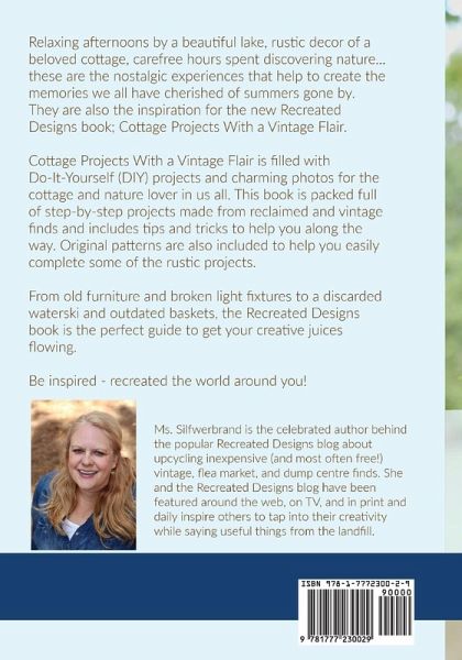 Relaxing afternoons by a beautiful lake, rustic decor of a beloved cottage, carefree hours spent discovering nature... these are the nostalgic experiences that help to create the memories we all have cherished of summers gone by. They are also the inspiration for the new Recreated Designs book; Cottage Projects With a Vintage Flair. Cottage Projects With a Vintage Flair is filled with Do-It-Yourself (DIY) projects and charming photos for the cottage and nature lover in us all. This book is packed full of step-by-step projects made from reclaimed and vintage finds and includes tips and tricks to help you along the way. Original patterns are also included to help you easily complete some of the rustic projects. From old furniture and broken light fixtures to a discarded waterski and outdated baskets, the Recreated Designs book is the perfect guide to get your creative juices flowing. Be inspired - recreate the world around you! This book is written and photographed by Lisa Silfwerbrand, the author and creator of the popular Recreated Designs blog. Ms. Silfwerbrand is the celebrated author behind the popular Recreated Designs blog about upcycling inexpensive (and most often free!) vintage, flea market, and dump centre finds. She and the Recreated Designs blog have been featured around the web, on TV, and in print and daily inspire others to tap into their creativity while saying things from the global landfill.