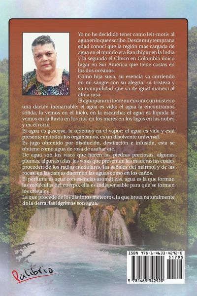 Yo no he decidido tener como leit-motiv al agua en lo que escribo. Desde muy temprana edad conocí que la región mas cargada de agua en el mundo era Ranchipur en la India y la segunda el Choco en Colombia único lugar en Sur América que tiene costas en los dos océanos. Como hija suya, su esencia va corriendo en mi sangre con su alegría, su tristeza y su tranquilidad que va de igual manera al alma rusa. El agua para mi tiene un encanto un misterio una dación inenarrable; el agua es vida; el agua la encontramos sólida, la vemos en el hielo, en la escarcha; el agua es líquida la vemos en la lluvia en los ríos en los mares en los lagos en las nubes y en el rocío. El agua es gaseosa, la tenemos en el vapor; el agua es vida y está presente en todos los organismos, es un disolvente universal. Es jugo obtenido por disolución, destilación e infusión, esta se obtiene como agua de rosa de asahar etc. De agua son los visos que hacen las piedras preciosas, algunas plumas, algunas telas, las vetas que presentan las maderas las cuales proceden de los radios medulares, las señales del mármol y de las rocas; en las zanjas duermen las aguas como en los caños. El perfume es agua con esencias aromáticas, agua es la que forman las moléculas del cuerpo, ella es indispensable para que se formen los cristales. La que procede de los distintos meteoros, la que brota naturalmente de la tierra, las lágrimas son agua.