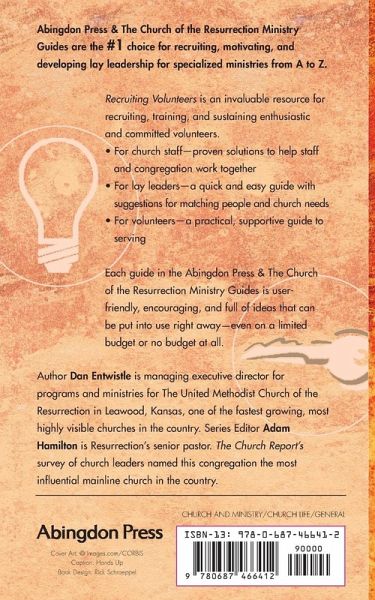 The Abingdon-Church of the Resurrection Ministry Guides are the first choice for recruiting, motivating, and developing lay leadership for specialized ministries from A to Z--from adult ministries to ushering. Each inexpensive, 64-page Guide brings together Church of the Resurrection's can-do attitude with Abingdon Press's ministry of empowering church leaders. The result is a series that is user-friendly, encouraging, and most important, practical. The passion to help churches experience how many things they can do to encourage participation drives these Ministry Guides. Each Guide is concise, conversational, and current, full of ideas you'll be able to implement immediately, with little or no budget. Recognizing that volunteers are busy people who work hard, the Guides will be the first place to turn when you're new to a topic, to help you feel empowered, prepare quickly, and get up and running with confidence and creativity. You'll find eye-catching icons and features that help you move directly to practical, fun, and effective solutions. An excerpt from the Circuit Rider review: "This little guide, another in the series out of The Church of the Resurrection in Leawood Kansas, will be helpful to churches large, medium and small desiring to develop and expand lay participation in all aspects of congregational life and work. Dan Entwistle, managing executive director for programs and ministries at The Church of the Resurrection, writes out of years of experience in recruiting, training and deploying laypeople for ministry. His book will be no less valuable to UMM and UMW units, campus ministries, conference and district staff and church-related non-profits." (Click here to read the entire review.)