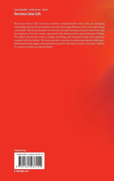 Rectenna Solar Cells discusses antenna-coupled diode solar cells, an emerging technology that has the potential to provide ultra-high efficiency, low-cost solar energy conversion. This book will provide an overview of solar rectennas, and provide thorough descriptions of the two main components: the diode, and the optical antenna. The editors discuss the science, design, modeling, and manufacturing of the antennas coupled with the diodes. The book will provide concepts to understanding the challenges, fabrication technologies, and materials required to develop rectenna structures. Written by experts in their specialized fields.