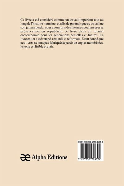 Recueil de chansons en patois de la Bresse, un livre classique, a été considéré comme important tout au long de l'histoire de l'humanité, et pour que cet ouvrage ne soit jamais oublié, chez Alpha Editions, nous avons fait des efforts pour sa préservation en rééditant ce livre dans un format moderne pour les générations présentes et futures. Tout ce livre a été reformaté, retapé et conçu. Ces livres ne sont pas constitués de copies numérisées de leur ¿uvre originale et le texte est donc clair et lisible.