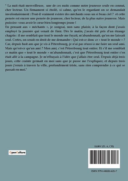 Plongez dans le monde captivant de Fédor Mikhaïlovitch Dostoïevski avec son "Recueil de nouvelles", une collection de récits passionnants qui explore la nature humaine, les dilemmes moraux et les complexités de la société. Dostoïevski, un maître incontesté de la littérature russe, utilise son style narratif unique pour peindre un portrait vivant et nuancé de l'existence humaine. Ce recueil comprend plusieurs nouvelles qui, bien que distinctes dans leurs intrigues, sont unies par le talent inégalé de Dostoïevski pour explorer les profondeurs de la psyché humaine. Que ce soit à travers l'histoire d'un homme luttant contre sa conscience ou celle d'un individu confronté à la corruption de la société, Dostoïevski capture les contradictions inhérentes à la condition humaine. Les nouvelles de Dostoïevski sont imprégnées d'une analyse pénétrante de l'éthique, de la culpabilité et de la rédemption. Elles mettent en lumière les dilemmes intérieurs auxquels nous sommes tous confrontés, tout en révélant les dynamiques sociopolitiques complexes qui façonnent notre monde. Le "Recueil de nouvelles" de Dostoïevski est un voyage littéraire enrichissant qui offre des perspectives éclairantes sur la vie, l'humanité et la société. Il incite le lecteur à réfléchir à des questions essentielles et à contempler les paradoxes de l'existence humaine.