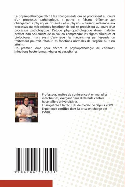 La physiopathologie décrit les changements qui se produisent au cours d'un processus pathologique, « patho- » faisant référence aux changements physiques observés et « physio- » faisant référence aux processus ou mécanismes fonctionnels qui se produisent au cours d'un processus pathologique. L'étude physiopathologique d'une maladie permet non seulement de mieux en comprendre les signes cliniques et biologiques, mais aussi d'envisager les mécanismes par lesquels un traitement pourrait rétablir les fonctions normales de l'organe ou tissu atteint.Un premier Tome pour décrire la physiopathologie de certaines infections bactériennes, virales et parasitaires
