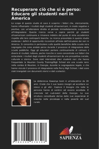 Lo scopo di questo studio di caso è scoprire i fattori che, storicamente, hanno influenzato i risultati degli studenti afroamericani, in modo negativo o positivo, con un'attenzione diretta al periodo immediatamente successivo all'integrazione. Questa ricerca serve a capire perché gli studenti afroamericani continuano a rimanere indietro dal punto di vista accademico rispetto alle loro controparti bianche. La ricerca presentata in questo studio evidenzia i deficit di opportunità riscontrati all'inizio dell'istruzione dei neri in America. Si concentra in particolare sulle qualità benefiche della scuola nera segregata che sono andate perse durante il processo di integrazione delle scuole pubbliche. Oggi gli educatori parlano continuamente di colmare il divario di risultati; tuttavia, poche ricerche si sono concentrate sui fattori che ostacolano i risultati degli studenti afroamericani da una prospettiva sociale, culturale e storica. Sono stati intervistati dieci studenti neri che hanno frequentato la Houston County Training/High School e/o una scuola nera nella contea di Houston, in Georgia, durante la segregazione legale, e che hanno vissuto il processo di integrazione nella Perry High School; i dati sono stati triangolati con documenti storici e dati scolastici.